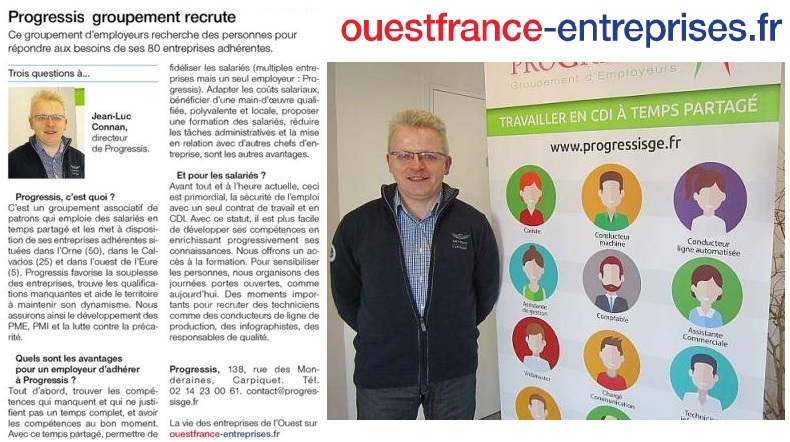 Le journal Ouest-France vient de consacrer un article au groupement d’employeurs Progressis qui recrute à temps partagé.
