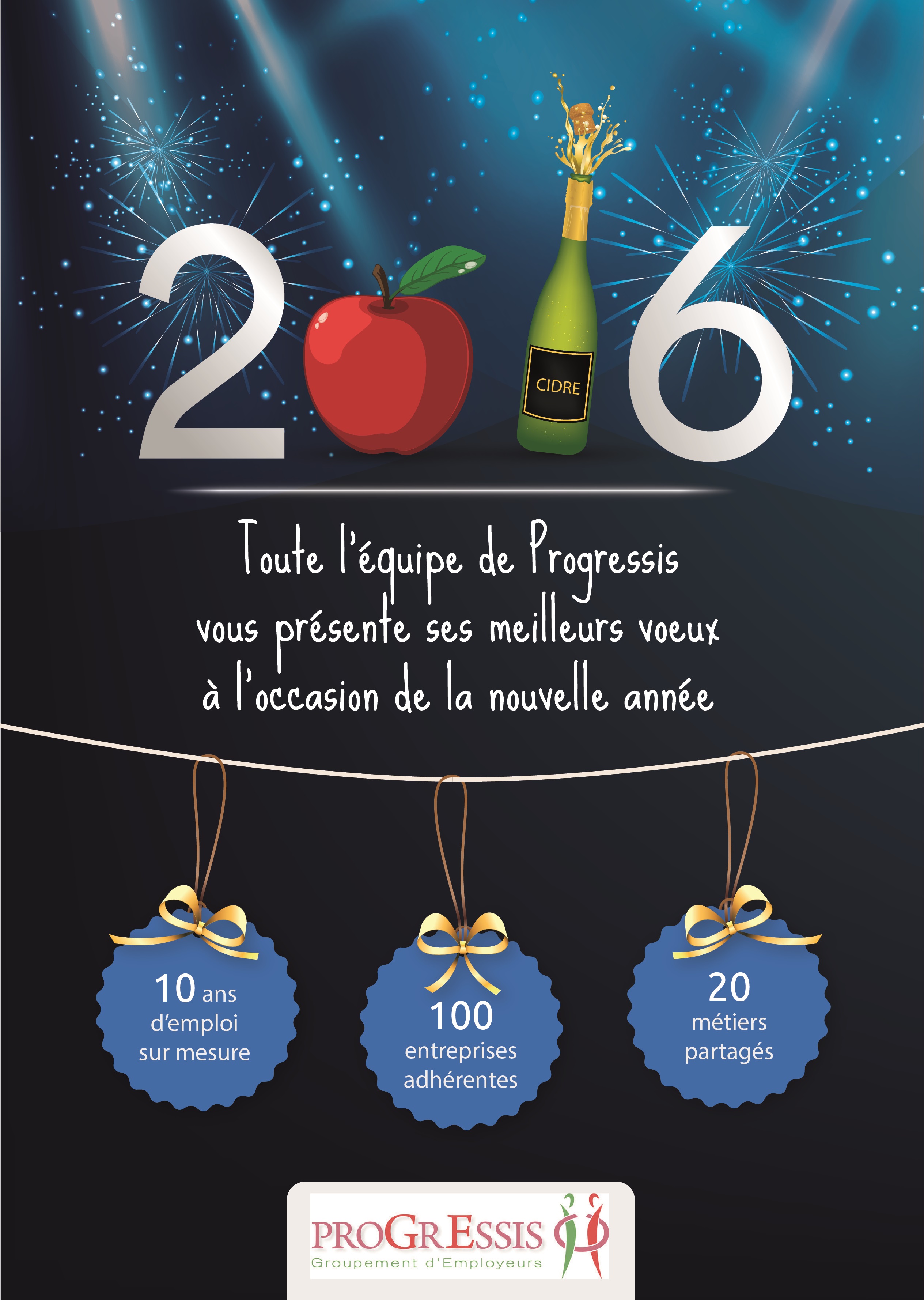 Le groupement d’employeurs Progressis vous présente ses meilleurs voeux pour cette nouvelle année 2016.